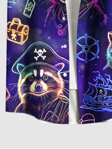 Chemise à Manches Courts> Chemise hawaïenne grande taille pour homme, avec motif raton laveur, pirate, voilier, gouvernail, cocotier et galaxie, boutons et poche.