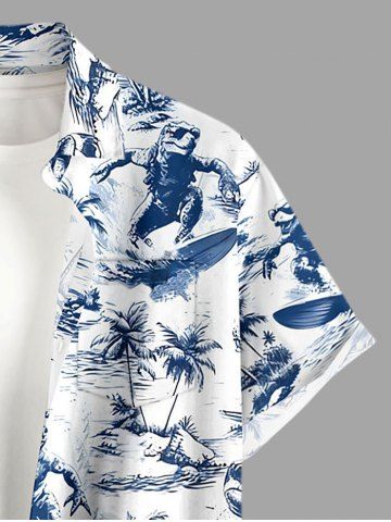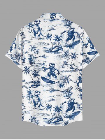 Chemise hawaïenne grande taille pour homme, imprimé cocotiers, dinosaures et vagues, avec poches et boutons. - Bleu - Bleu