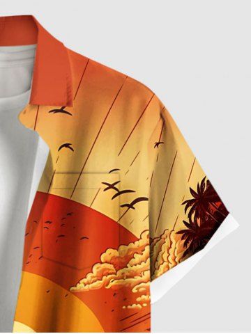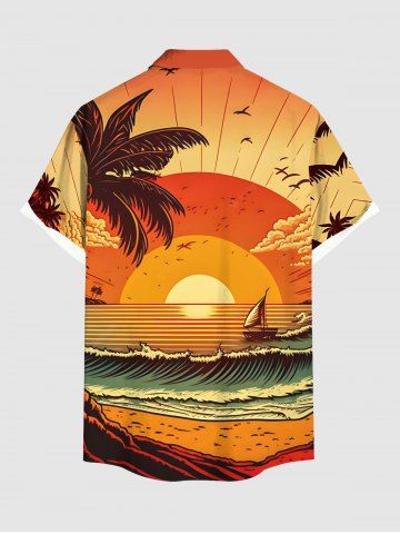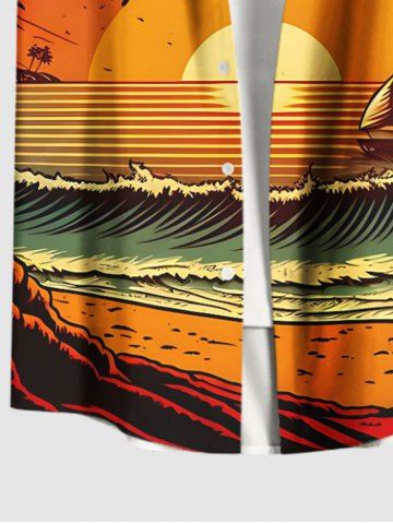 Chemise hawaïenne grande taille pour homme, imprimé cocotiers, vagues et coucher de soleil, avec poches et boutons. - Orange - Orange