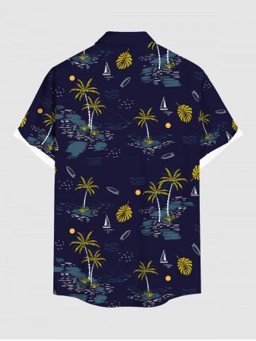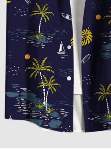 Chemise hawaïenne grande taille pour homme, imprimé cocotiers, voiliers et lune, boutons et poche. - Bleu Marine - Bleu Marin