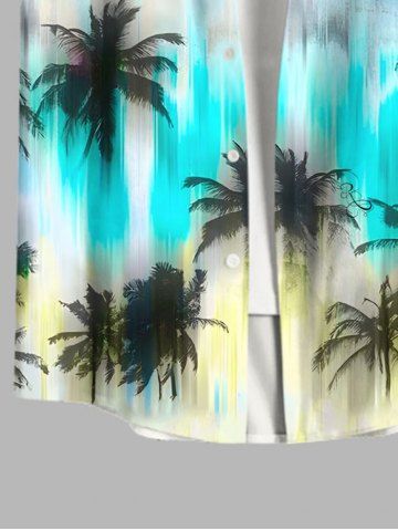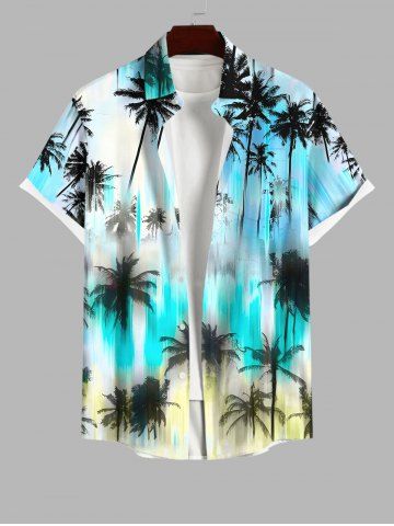 Chemise hawaïenne grande taille pour homme, imprimé colorblock ombré cocotier, boutons et poche. - Multi-a - 4xl