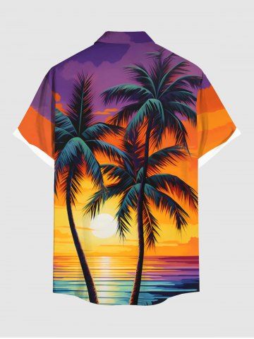 Chemise hawaïenne grande taille pour homme, imprimé coucher de soleil sur mer avec cocotiers et nuages, boutons et poche. - Multi-a - 3xl