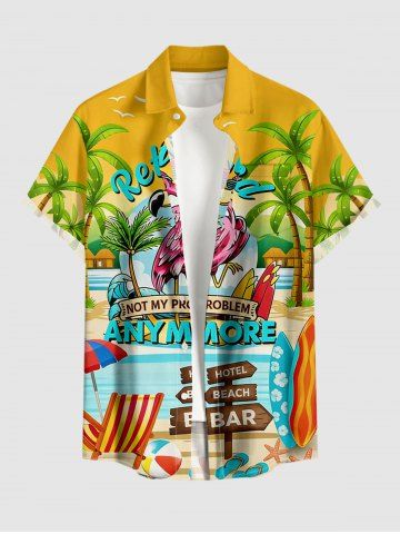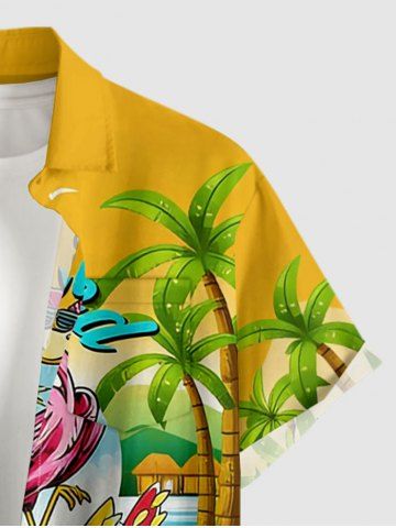 Chemise hawaïenne grande taille pour homme, imprimé flamants roses, cocotiers, parapluie et étoiles de mer, boutons et poche. - Jaune - Jaune