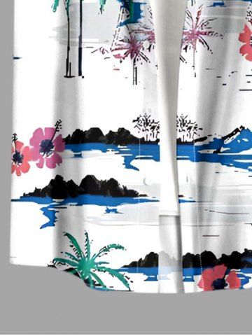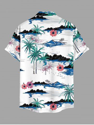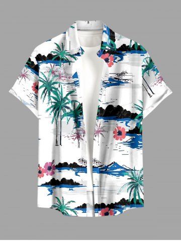 Chemise hawaïenne grande taille pour homme, imprimé fleurs de cocotiers et montagnes, boutons et poche. - Blanc - Blanc