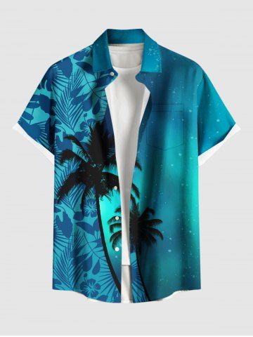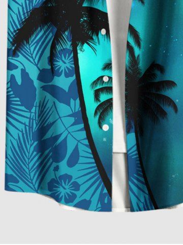 Chemise hawaïenne grande taille pour homme, imprimé galaxie ombré cocotier hibiscus fleurs feuilles, boutons et poche. - Turquoise Foncée - 3xl