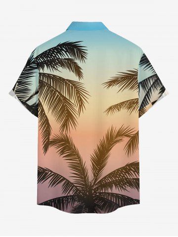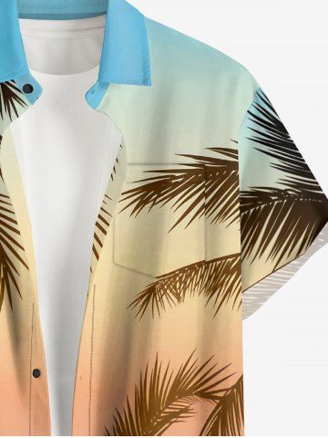 Chemise hawaïenne grande taille pour homme, imprimé ombré cocotier, boutons et poche. - Bleu Clair - Bleu Clair