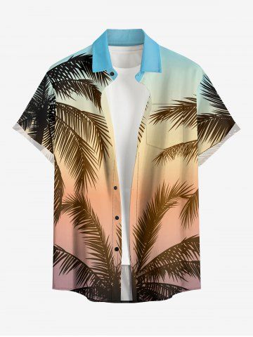 Chemise à Manches Courts > Chemise hawaïenne grande taille pour homme, imprimé ombré cocotier, boutons et poche.