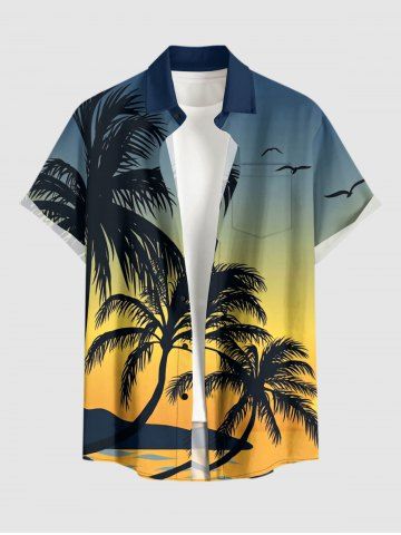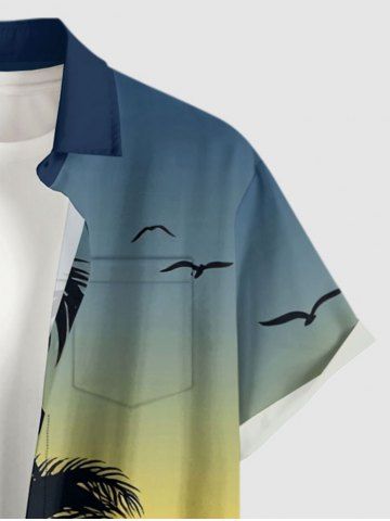 Chemise hawaïenne grande taille pour homme, imprimé ombré cocotier et oiseaux, boutons et poche. - Bleu Profond - 2xl