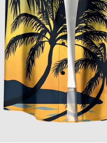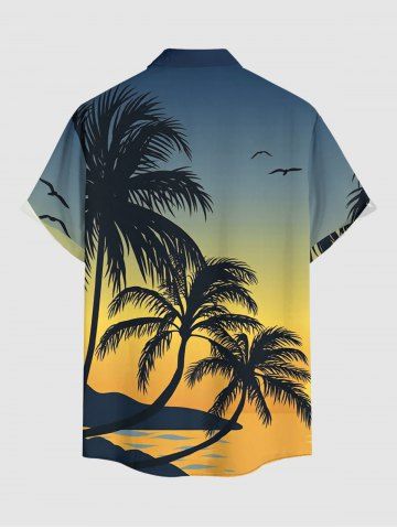Chemise à Manches Courts> Chemise hawaïenne grande taille pour homme, imprimé ombré cocotier et oiseaux, boutons et poche.