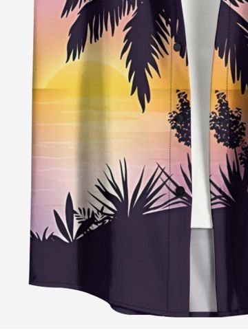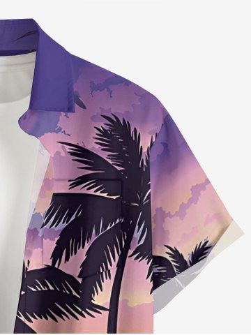Chemise hawaïenne grande taille pour homme, imprimé ombré cocotier, nuage et soleil, boutons et poche. - Pourpre - Pourpre