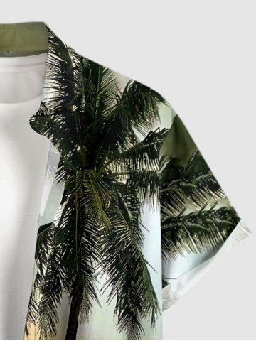 Chemise hawaïenne grande taille pour homme, imprimé ombré soleil cocotier, boutons et poche. - Plant Green - 2xl