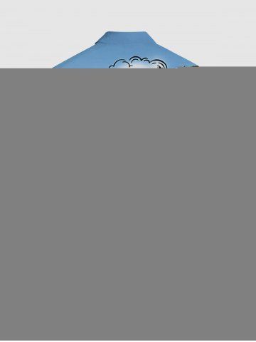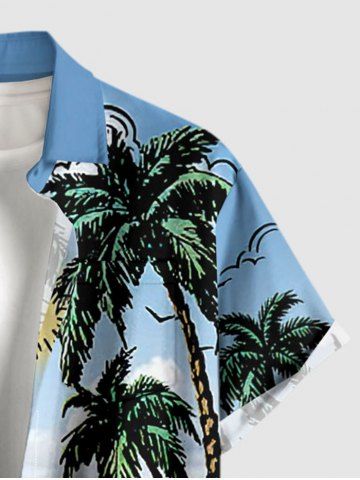 Chemise hawaïenne grande taille pour homme, imprimé paysage marin, cocotiers, soleil, bateau et vagues, boutons et poche. - Bleu Ciel - Bleu Ciel