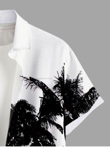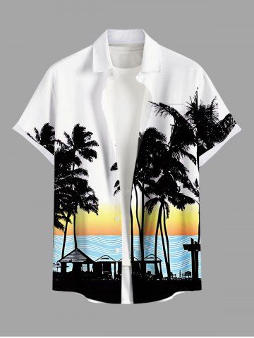 Chemise hawaïenne grande taille pour homme, imprimé paysage marin ombré avec cocotiers et poches boutonnées, style hawaïen. - Blanc - Blanc