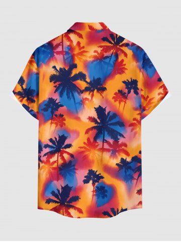 Chemise à Manches Courts > Chemise hawaïenne grande taille pour homme, imprimé tie-dye cocotier, boutons et poche.
