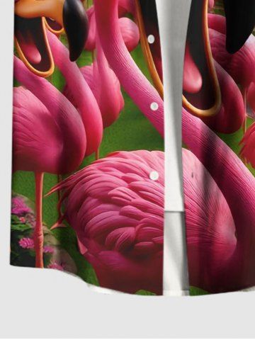 Chemise à Manches Courts > Chemise hawaïenne grande taille pour homme, imprimé tropical flamants roses et cocotiers, boutons et poche.
