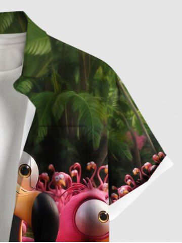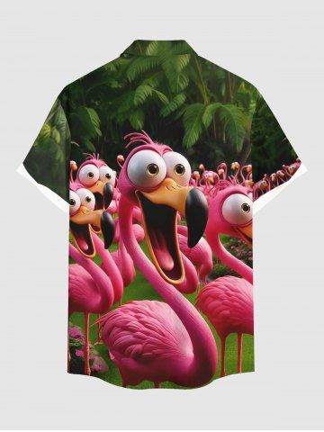 Chemise à Manches Courts> Chemise hawaïenne grande taille pour homme, imprimé tropical flamants roses et cocotiers, boutons et poche.