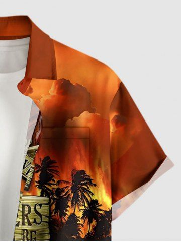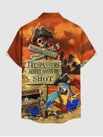 Chemise hawaïenne grande taille pour homme, imprimée avec un crâne de perroquet, un pirate et un motif ombré de ciel, orné d'un cocotier et d'un enseigne. Motif : cocotier, crâne et perroquet. - Brun Légère - Marron Clair