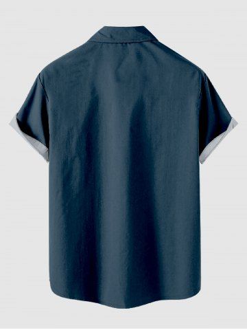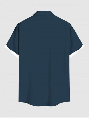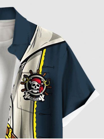 Chemise hawaïenne grande taille pour homme, imprimée avec un motif de crâne, un gouvernail et un couteau de pirate, avec poches et boutons. - Bleu De Minuit - Xl