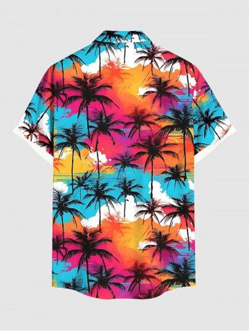 Chemise hawaïenne grande taille pour homme, imprimée ciel coloré et cocotiers, avec boutons et poche. - Multi - Multi