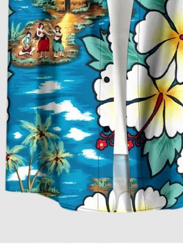 Chemise hawaïenne grande taille pour homme, imprimée cocotiers et hibiscus, paysage marin, boutons et poche. - Pers - 3xl