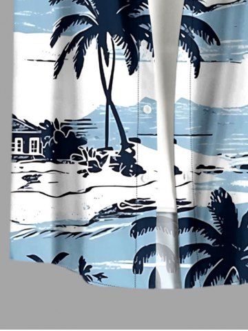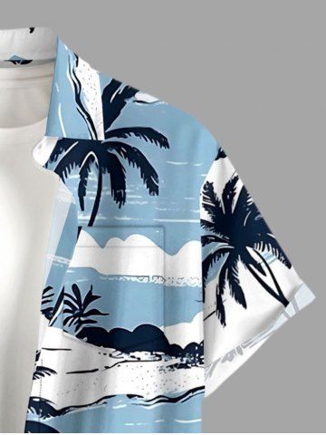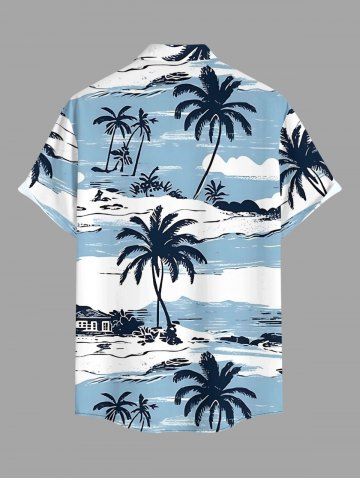 Chemise hawaïenne grande taille pour homme, imprimée cocotiers et nuages, paysage marin, boutons et poche. - Bleu Clair - Bleu Clair