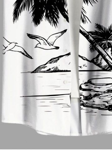 Chemise hawaïenne grande taille pour homme, imprimée cocotiers et oiseaux, paysage marin, boutons et poche. - Blanc - Blanc