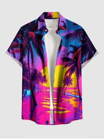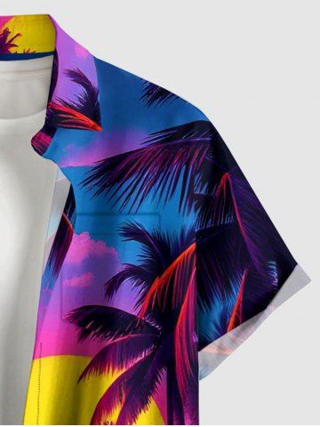 Chemise à Manches Courts > Chemise hawaïenne grande taille pour homme, imprimée cocotiers et soleil, avec poches et boutons.