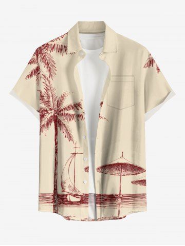 Chemise hawaïenne grande taille pour homme, imprimée cocotiers et voiliers, paysage marin, boutons et poche. - Café Lumière - 4xl