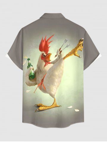 Chemise à Manches Courts> Chemise hawaïenne grande taille pour homme, imprimée coq kung-fu et bière, avec boutons et poche.