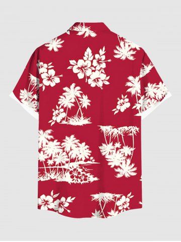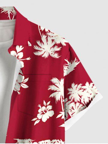 Chemise hawaïenne grande taille pour homme, imprimée de cocotiers et d'hibiscus, avec poches et boutons. - Rouge - Rouge
