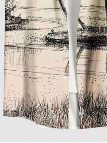 Chemise hawaïenne grande taille pour homme, imprimée de cocotiers et de paysages marins, avec boutons et poche. - Abricot - Abricot
