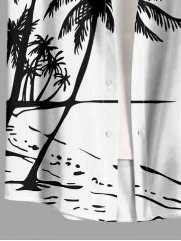 Chemise hawaïenne grande taille pour homme, imprimée de cocotiers et de paysages marins, avec boutons et poche. - Blanc - Blanc