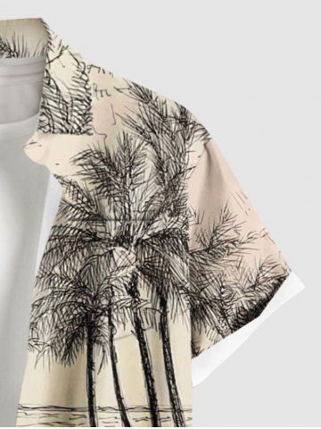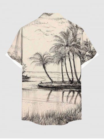 Chemise à Manches Courts> Chemise hawaïenne grande taille pour homme, imprimée de cocotiers et de paysages marins, avec poches et boutons.