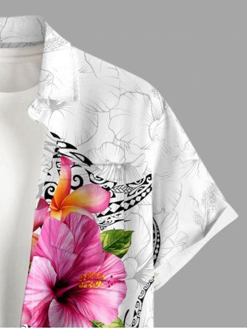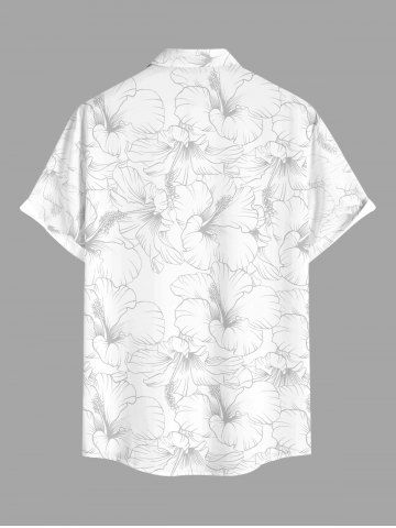 Chemise hawaïenne grande taille pour homme, imprimée de fleurs d'hibiscus, à boutons et poches. - Blanc - Blanc