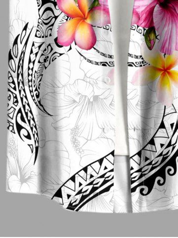 Chemise hawaïenne grande taille pour homme, imprimée de fleurs d'hibiscus, à boutons et poches. - Blanc - Blanc