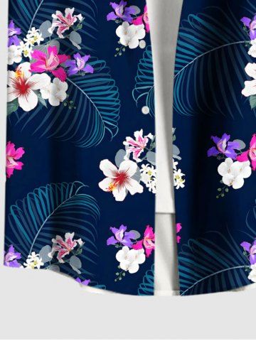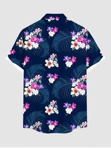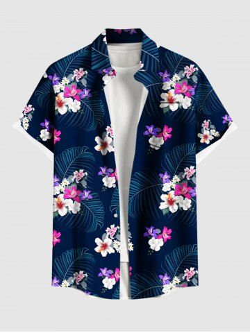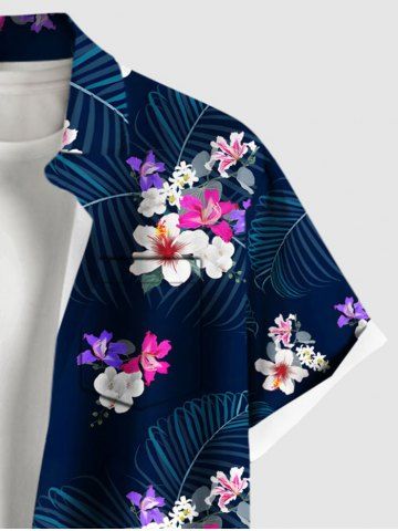 Chemise hawaïenne grande taille pour homme, imprimée de fleurs d'hibiscus et de feuilles tropicales, avec boutons et poche. - Bleu De Minuit - 4xl