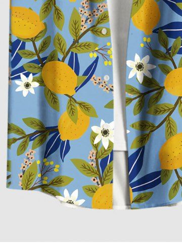 Chemise hawaïenne grande taille pour homme, imprimée de fleurs de citronnier, avec boutons et poche. - Paon Bleu - 3xl