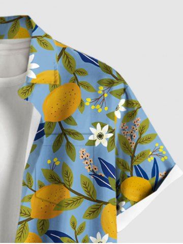 Chemise à Manches Courts > Chemise hawaïenne grande taille pour homme, imprimée de fleurs de citronnier, avec boutons et poche.