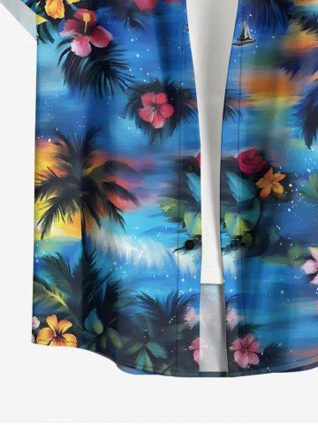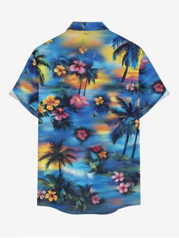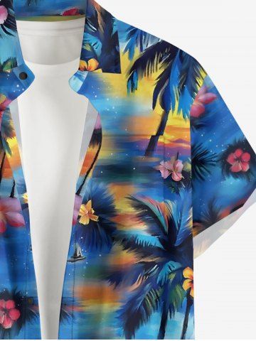 Chemise hawaïenne grande taille pour homme, imprimée de fleurs de cocotiers, avec boutons et poche. - Bleu Ciel - Bleu Ciel