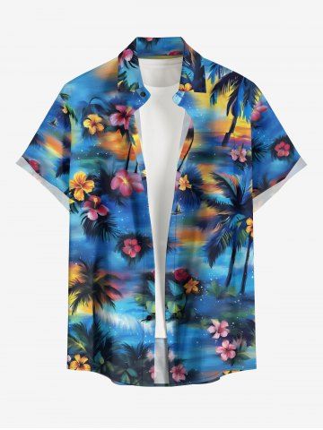 Chemise à Manches Courts> Chemise hawaïenne grande taille pour homme, imprimée de fleurs de cocotiers, avec boutons et poche.
