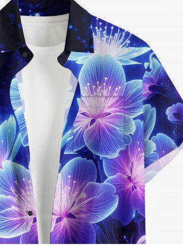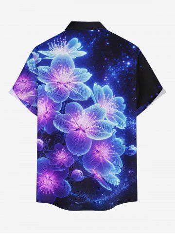 Chemise à Manches Courts > Chemise hawaïenne grande taille pour homme, imprimée de fleurs galaxie, avec boutons et poche.