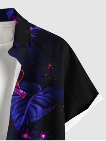 Chemise à Manches Courts> Chemise hawaïenne grande taille pour homme, imprimée en 3D avec des fleurs d'hibiscus pailletées, des boutons et une poche.