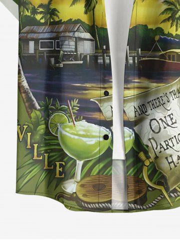 Chemise hawaïenne grande taille pour homme, motif cocotier, perroquet, jus de fruits, bateau et soleil, boutons et poche. - Plant Green - Xl