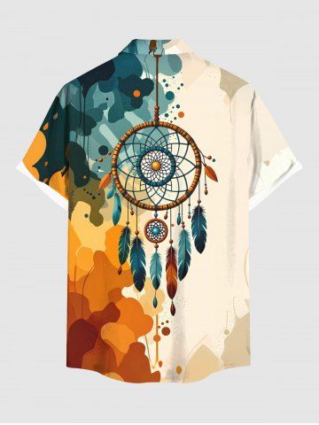 Chemise hawaïenne grande taille pour homme, ornée d'un attrape-rêves, de plumes et d'éclaboussures de peinture, avec boutons et poche. - Café Lumière - S
