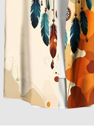 Chemise hawaïenne grande taille pour homme, ornée d'un attrape-rêves, de plumes et d'éclaboussures de peinture, avec boutons et poche. - Café Lumière - 2xl