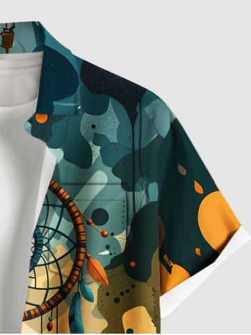 Chemise à Manches Courts > Chemise hawaïenne grande taille pour homme, ornée d'un attrape-rêves, de plumes et d'éclaboussures de peinture, avec boutons et poche.
