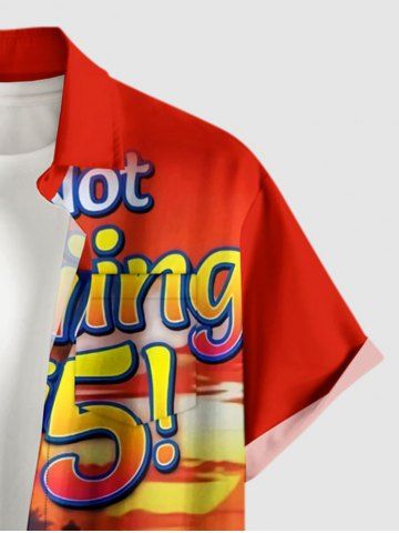 Chemise hawaïenne grande taille pour homme, ornée d'un perroquet, d'un cocotier et d'un paysage marin, avec boutons et poche. - Rouge - Rouge