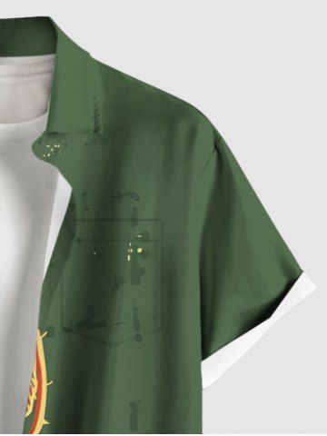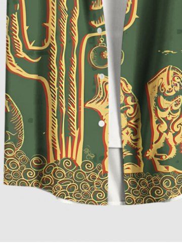 Chemise Hawaiienne Imprimé Cactus et Bottes avec Poches Grande Taille pour Homme - Vert - Vert