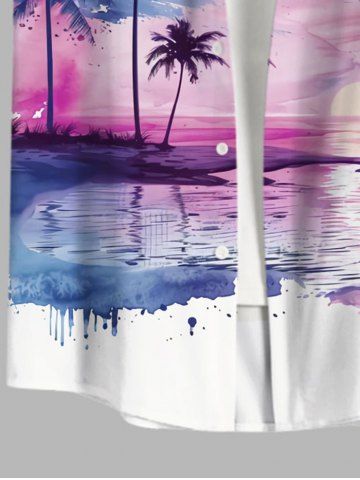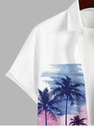 Chemise Hawaiienne Imprimé Cocotier à Lavis Grande Taille avec Poche pour Homme - Blanc - Blanc