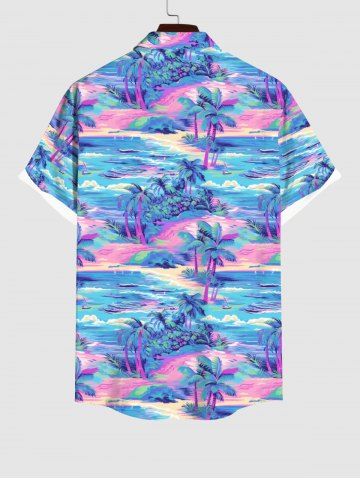 Chemise Hawaiienne Imprimé Cocotier Coloré Grande Taille avec Poches - Bleu - Bleu